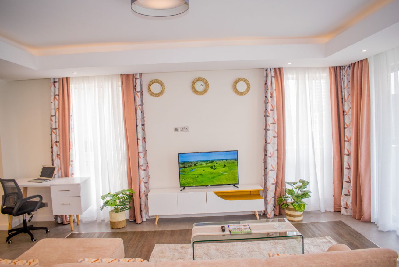 Relax in the highly sought-after upper side of Westlands in Nairobi. This BednBeyond apartment is conveniently located within walking distance of numerous social amenities such as 5-star hotels, shopping malls, recreational centres, and more. The house boasts an urban-inspired layout that is stunning both inside and out, with elegant modern designs and exceptional amenities. The balcony and custom-made curtain windows allow plenty of natural light and offer breathtaking, expansive views of the city skyline.